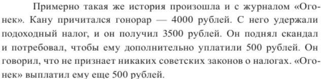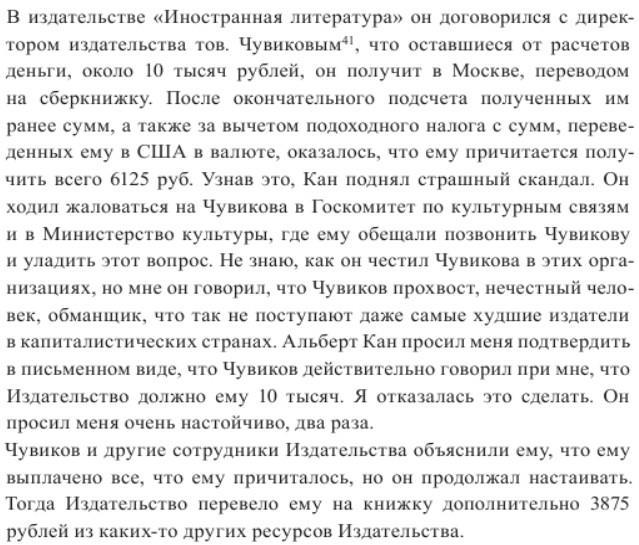 Вторая поездка американского писателя и «большого друга СССР» Альберта Юджина Кана состоялась в конце 1959. Весь год Кан вынашивал планы написать книгу сначала об СССР, потом о балерине Улановой. Договорился с издательством в США. Но тем нужна была поддержка проекта с советской стороны, но советская сторона как-то не спешила писать письма поддержки и брать на себя социалистические обязательства. Поэтому Кан приехал злой и разобиженный, для того чтобы организовать свой другой уже приезд с женой и детьми месяца на четыре за счет принимающей стороны. В этот раз, по его утверждению, поездка обошлась ему в кровных 500 долларов, видимо от этого и его мнение о СССР звучало как: