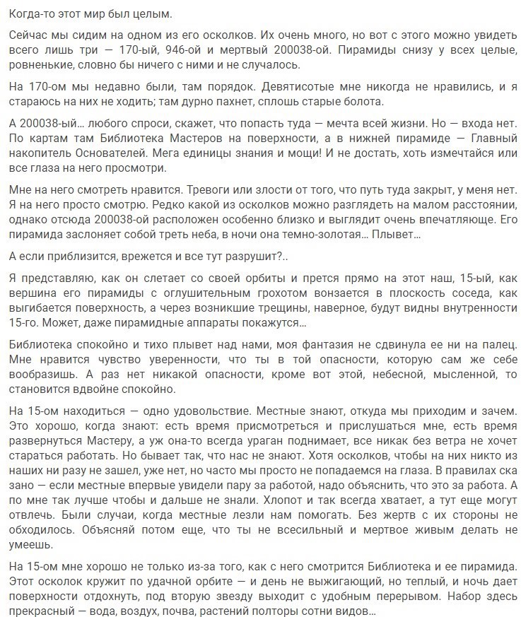 Мега единицы слов и ни черта не въеду: где я?.. что за мир такой?.. почему в тексте цифры вместо числительных?.. почему только шестизначное самое большое - нулей не хватило?.. И если этот 200038-ой мир мёртвый, то почему попасть туда - мечта всей жизни любого?