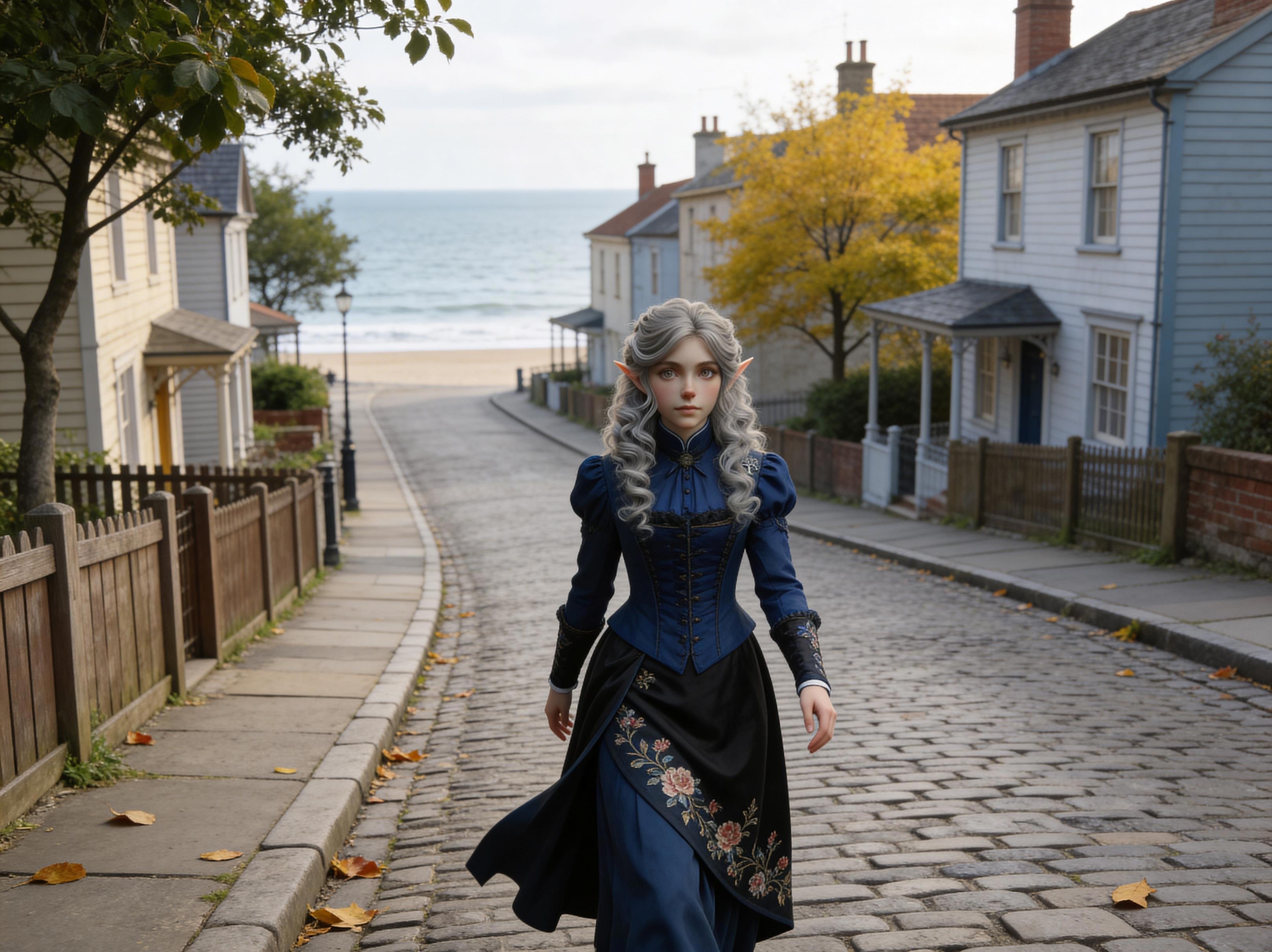 Одна из проблем, возникающих при попытках генерации чего-то старинного – дорожное покрытие. Как несложно догадаться, нейронка обучена на базе фотографий, где большая часть дорог покрыта типо асфальтом. К счастью, определенное количество брусчатки в старых городах, видимо, привлекательна для турья и поэтому что такое булыжники ака cobblestones ИИ смутно догадывается. В принципе, в Скаузере камень довольно дешев, благо, горы рядом, а поскольку из порта периодически возят всякое тяжелое, то булыжная мостовая даже оправдана.