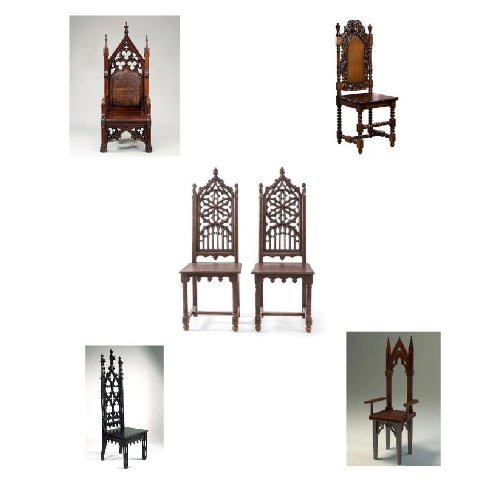 Только жесткие и неудобные готические стулья с высокими спинками и без всяких мягких подушечек которые можно подложить себе под задни.. Вообщем подложить для удобства сидения.
