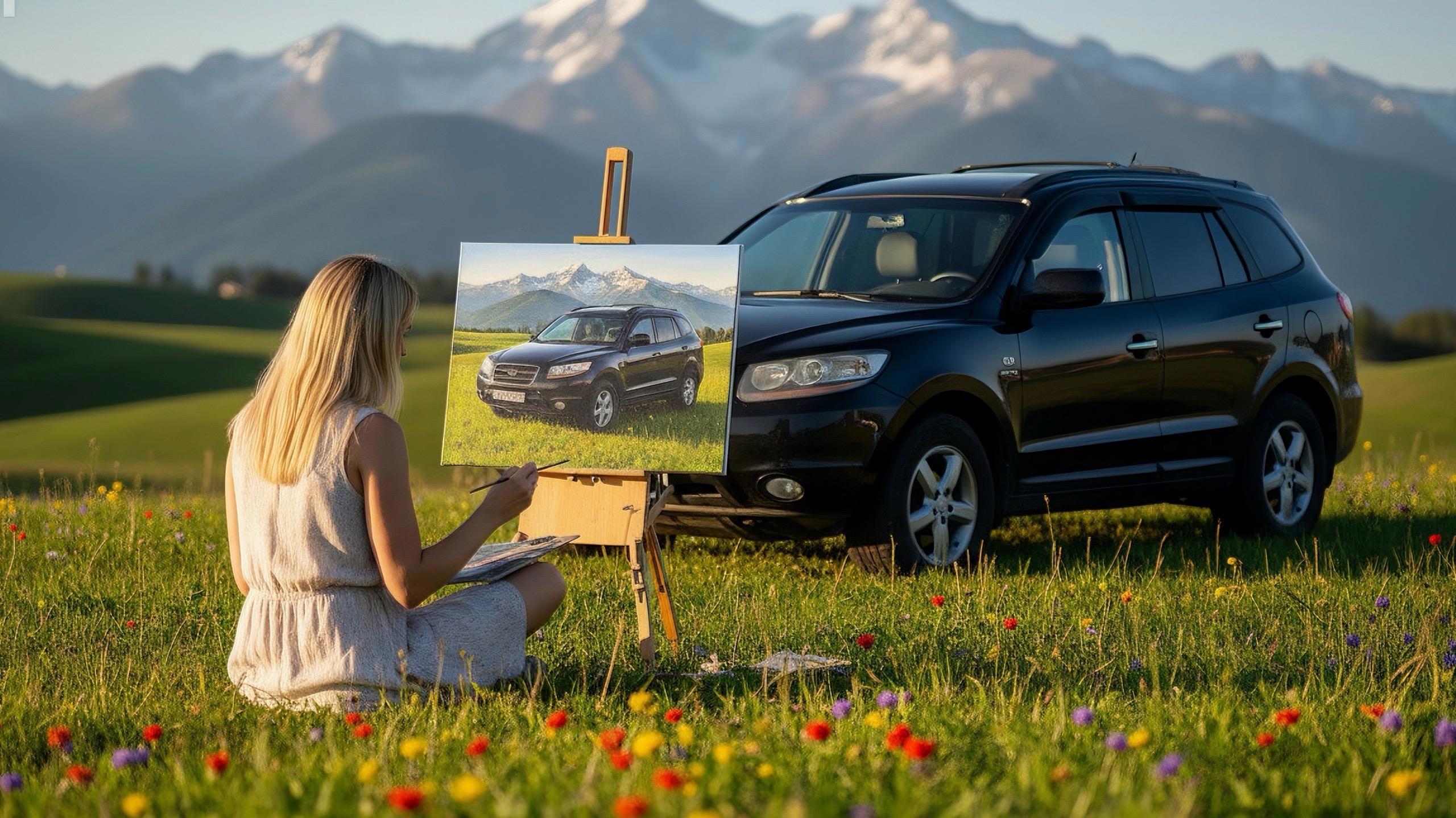 Если вдруг кто не понял, то поясню - появилась сомнительная мода на приклеивание дам к фото своего ржавого битого рыдвана своей "ласточки" с помощью ИИ инструментов.