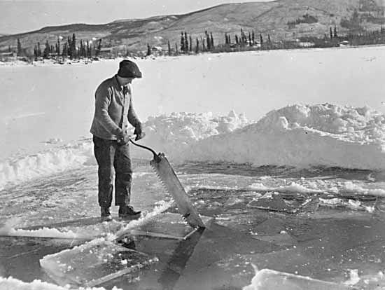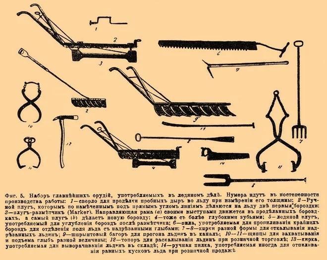 В наших деревнях лёд кололи все мужчины - для себя, общины, барина, царя, а в городах и в Европе сбором льда нередко занимались специальные резчики, собиравшиеся в артели. Они вырезали глыбы льда из замерзших озёр.