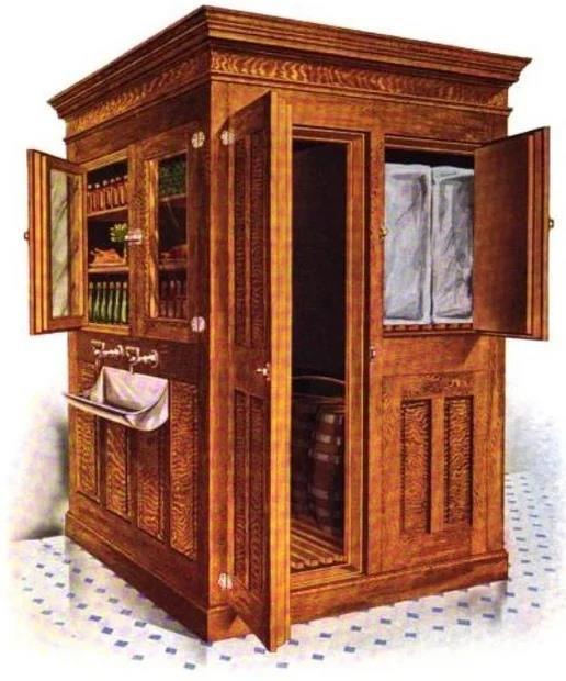 В это же время начали использовать домашние ледники. Это были деревянные шкафы из кедра, в которых был отсек для продуктов из металлических листов и соприкасающийся отсек для льда.