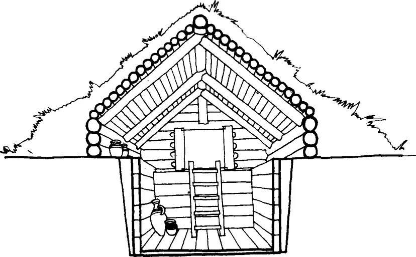 Подобный домик до самого верха заполняли смесью льда и снега, и только потом помещали в него продукты. В качестве крыши использовался толстый слой дерна. Сверху мастера добавляли еще и прослойку из земли. Это надежно предохраняло склад от перегрева, и еда надолго сохранялась свежей.