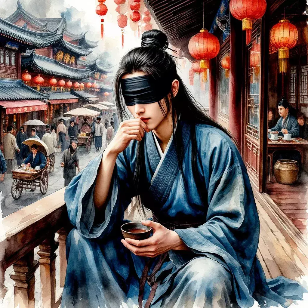 Лань Ши прикрывает глаза черной повязкой, прикидываясь слепцом, а еще он беден, носит дырявый халатТак начинается забег Лань Ши с Гуо Фэном, капитаном дворцовой стражи, выделенном нашему герою в помощники, по столице империи в попытке расследовать ритуальные убийства, совершенные загадочным Братством карпа, собравшимся свергнуть законную власть и посадить на трон «своего» императора.
