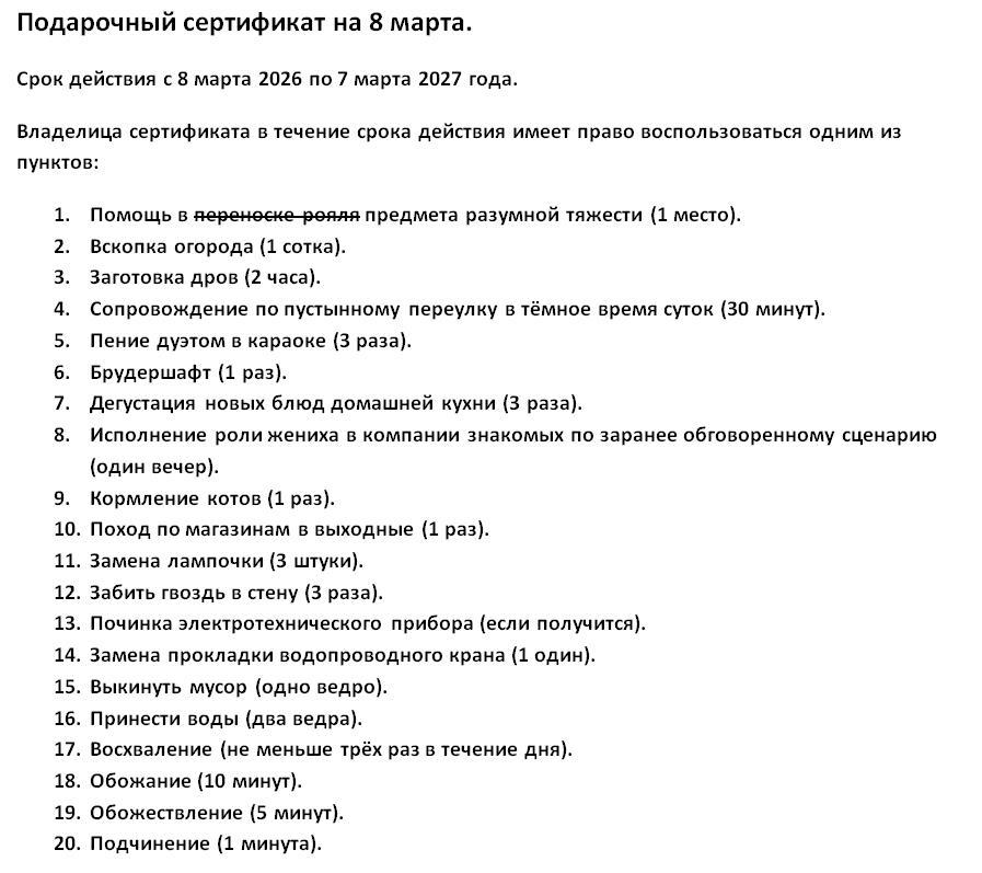 Придумал подарить сертификат, но сомневаюсь - может быть пунктов не хватает, или, наоборот, есть лишние: