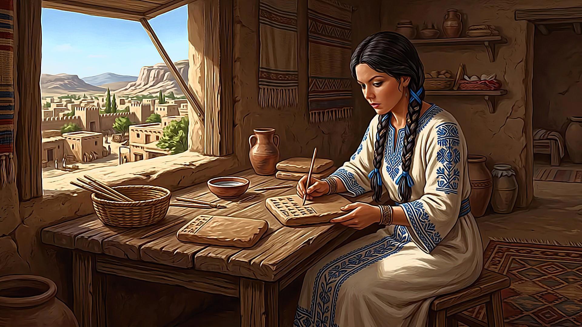 На одной из этих картинок нарисована девушка, которая что-то пишет на глиняной табличке. Это Карди Хастияровна, которую за её выдающийся ум мы в романе "Далёкая гроза" сделали министром финансов хеттского царя Тудхалии IV. Хеттское царство было одним из немногих государств древности, где женщины имели обширные права и свободы. Так и должно быть всегда. Желаем вам, милые женщины, чтобы все ваши таланты были оценены по достоинству. И не только в этот день.