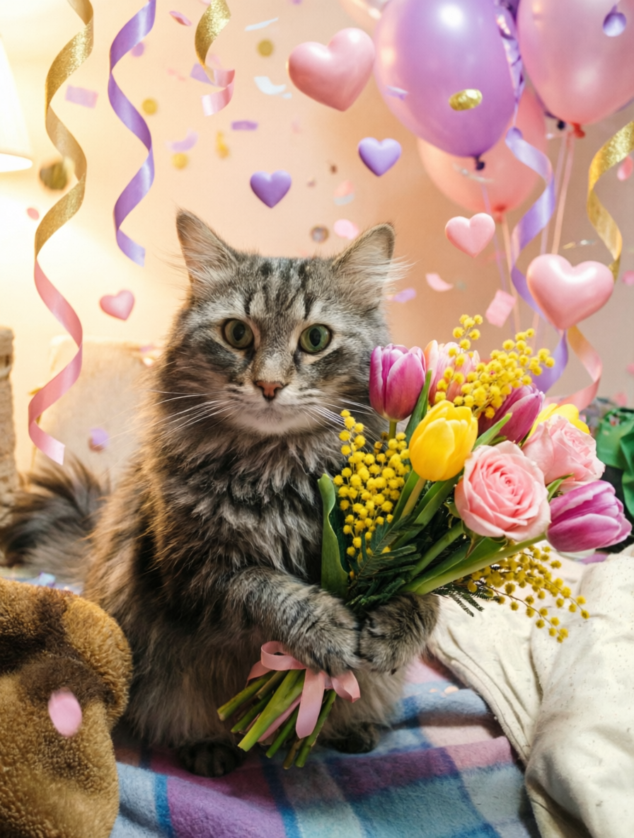 От всей души поздравляю прекрасную половину с их замечательным праздником! (и кот)