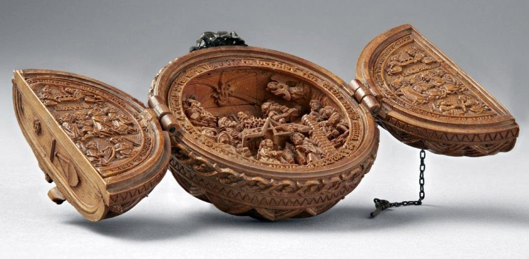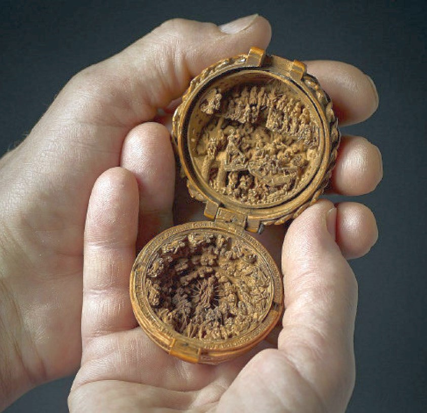 Автор: Евгений КрасС первого взгляда - симпатичный резной деревянный шарик. Или не шарик - они разные бывают, но общее одно - работа высшего класса! Дерево - самшит. Хотя и первый взгляд говорит о неординарности изделия - тонкая работа, однако он может ещё и раскладываться на несколько частей. И вот в этот момент наступает настоящий шок. И вот это сделано руками? И вот - да, именно руками. Правда таких изделий в мире немного - всего-то 135 штук. Здесь достоверная информация заканчивается и начинаются предположения. Говорят, что все они были изготовлены в начале 16 века то ли во Фландрии, то ли в Нидерландах. Назначение - что-то вроде походного алтаря (у нас делали для похожих целей так называемые иконы-складни). Некоторые детали этих композиций вообще недоступны для рассмотрения. Размеры сами оцените по фото.