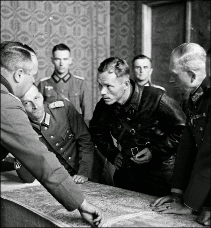 на фото: встреча немецких и советских солдат в Брест-Литовске, сентябрь 1939 года