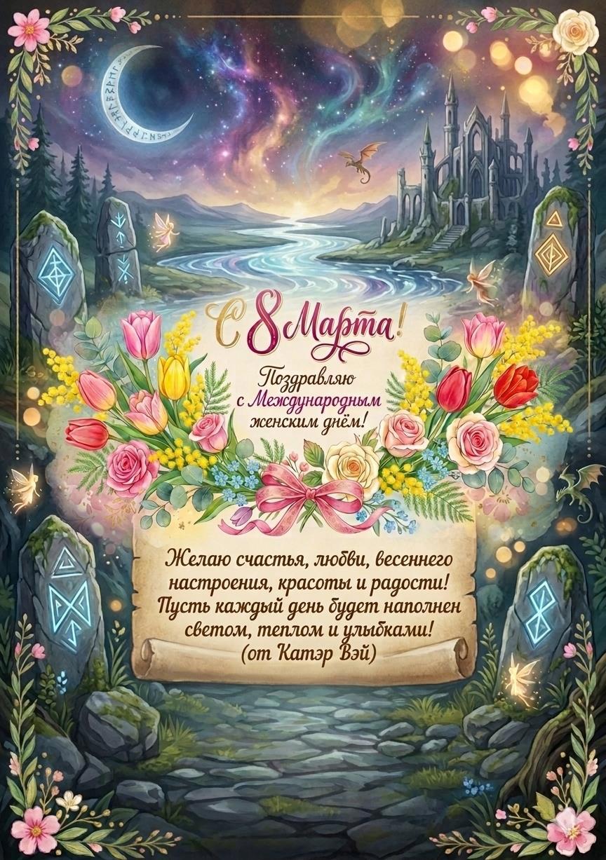 8 Марта — это прекрасный повод сказать вам самые теплые и искренние слова благодарности. Вы наполняете мир красотой, светом, любовью и нежностью. Ваша мудрость, терпение, душевная теплота и невероятная сила вдохновляют на свершения, согревают в самые трудные минуты и делают жизнь ярче и осмысленнее.