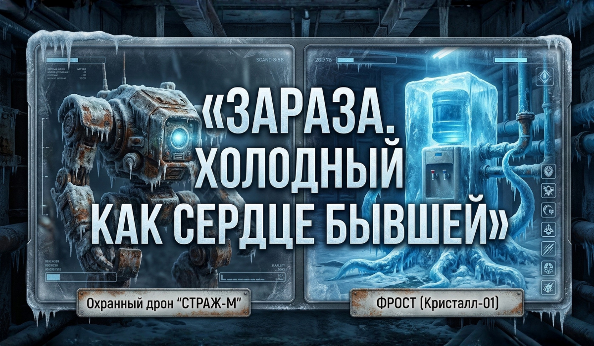 Эта цитата и легла в основу сегодняшнего арта (см. ниже). Слева — тот самый «Страж», справа — наш герой, который уже не просто сосулька, а настоящий ледяной паразит, пустивший корни в бетон НИИ.