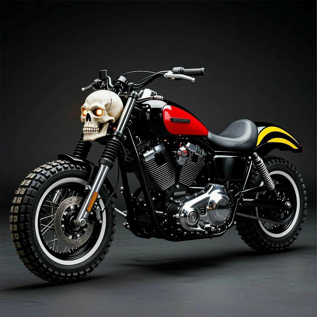 Поэтому, за основу был взят этот мотоцикл. Чтобы адаптировать к реалиям России, я решил сделать его более эндуристым. Как не пытайся, шедеврум напрочь отказывается рисовать хребтовую раму.