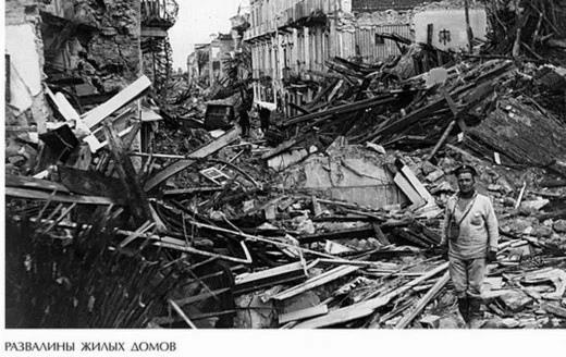 « Повсюду на развалинах сидели полуголые люди, которые руками рыли землю, пытаясь извлечь из -под обломков родных и близких. Другие, с обезумевшими глазами, бродили среди руин в поисках пищи и воды. В порванных ночных строчках, едва прикрывавших тела, мокрые, грязные и босые, со свечными огарками в руках, они, как будто, изображали картину Судного дня»
