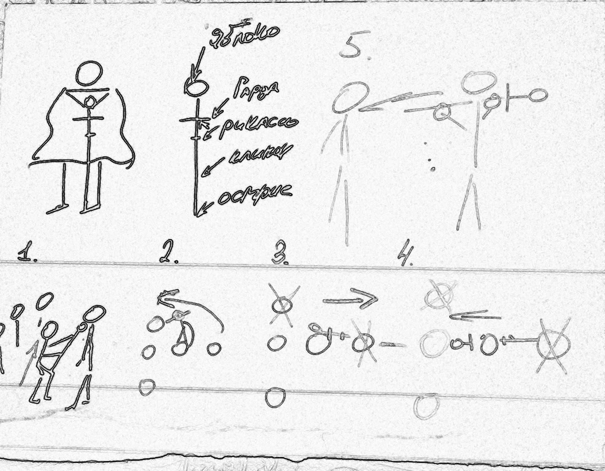 Ямар чуть присел и бедрами послал яблоко навершия верзиле под челюсть, запрокинув его голову назад - раз; поворот налево - так, что нож крайнего справа нападавшего запутался в складках осмолёного плаща, а стоящий слева приятель задиры был убит ударом конца гарды в висок - два.