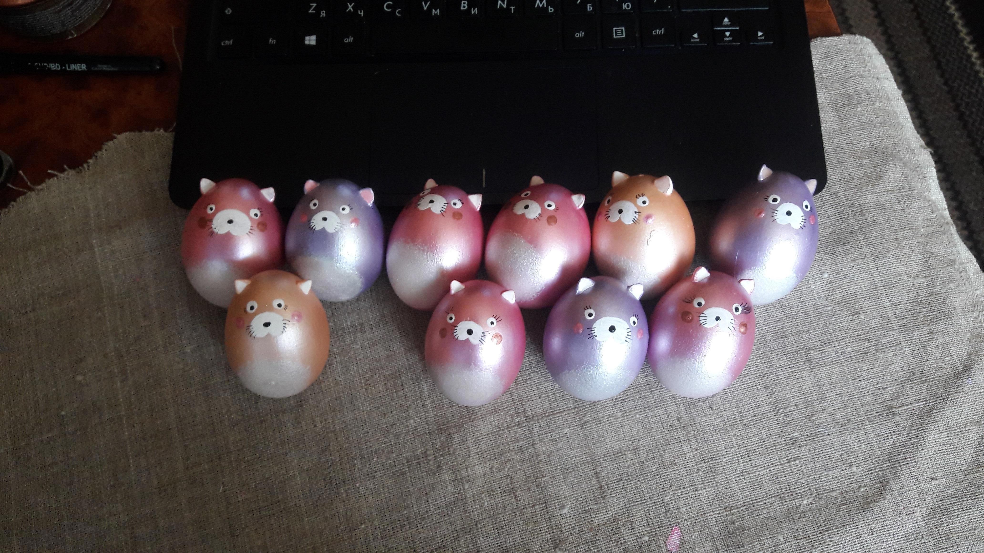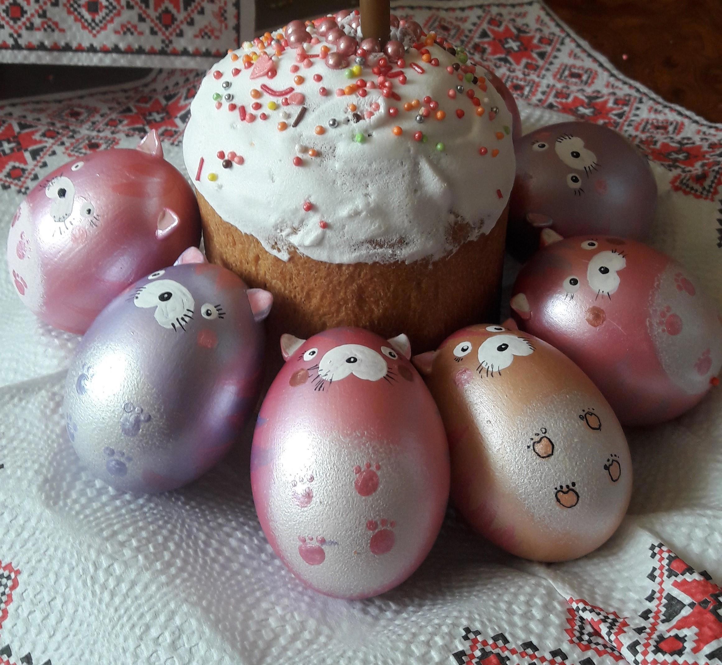 Традиционные писанки уже давным давно всем приелись, в прямом и переносном смысле. Давайте я расскажу, как легко и быстро сделать писаных котиков, чтобы радовать ими других девачек, воспиталок в саду и мелких детишек, если ваши большие дети уже не радуются и прутся от других фишек. Да и вообще привыкли, что дома полно всякой хрени, думают, что так у всех.