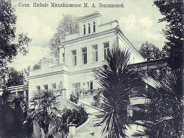 В конце 90-х годов XIX века М.М. Зензинов, увлеченный рассказами приехавшего с Кавказа знакомого, купил задешево земли в Сочи, где выстроил большой каменный дом. Имение было записано на имя жены, М.А.Зензиновой. Именно благодаря М.М. Зензинову и началось активное освоение Мацесты как лечебного курорта.