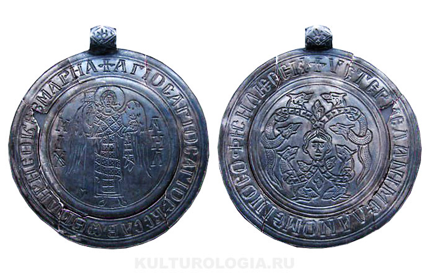 Серебряный змеевик с изображением Архангела Михаила, XII век.