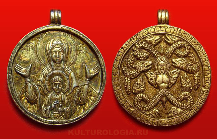 Тем удивительнее феномен так называемых "змеевиков", широко распространенных на Руси в Средневековье. Зм еевики - это охранные амулеты, в которых в буквальном смысле слова были сплавлены христианство и демоническая магия. Амулеты эти делались из полудрагоценных камней вроде яшмы, либо из золота, серебра или сплавов.