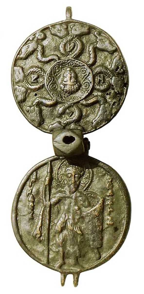 В древних манускриптах манускриптах подчеркивалось, что демон этот имел двенадцать голов (имен), соответствующих двенадцати его козням, что изображение этих двенадцати имен являлось защитой от вредоносного демона. Амулеты носили всегда так, чтобы изображение демона прилегало к коже, а святой - смотрел наружу.