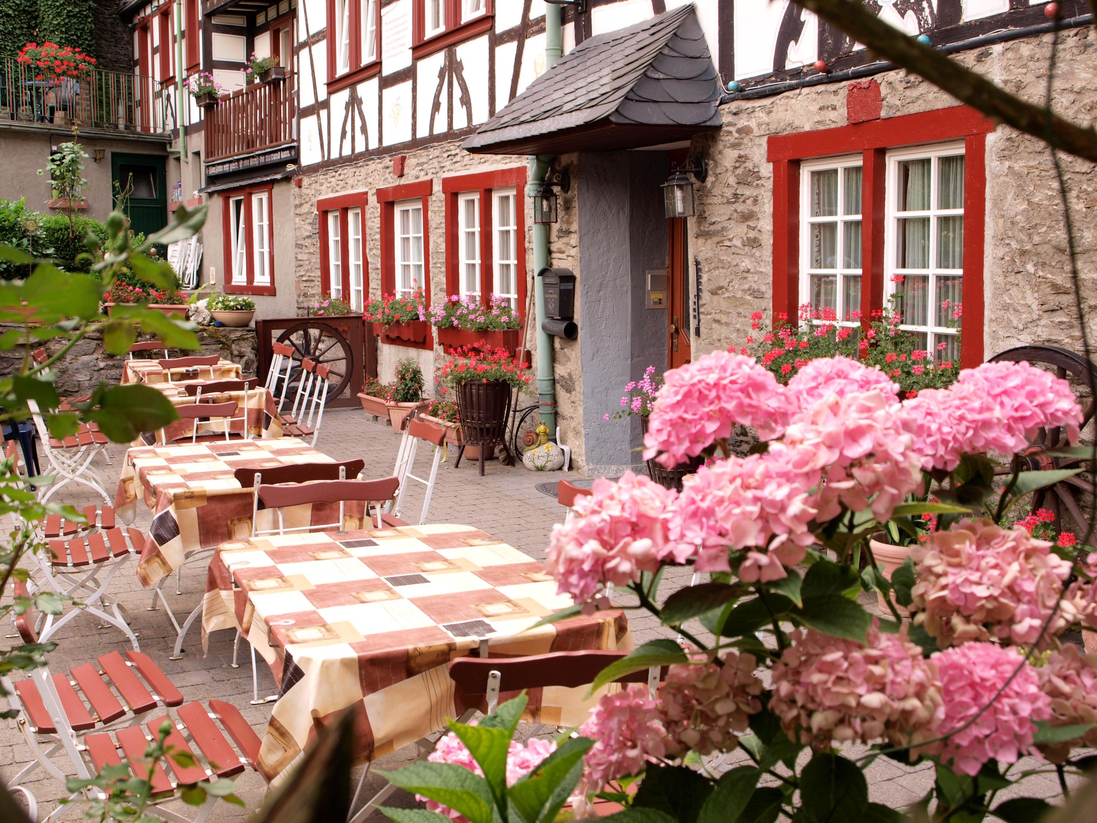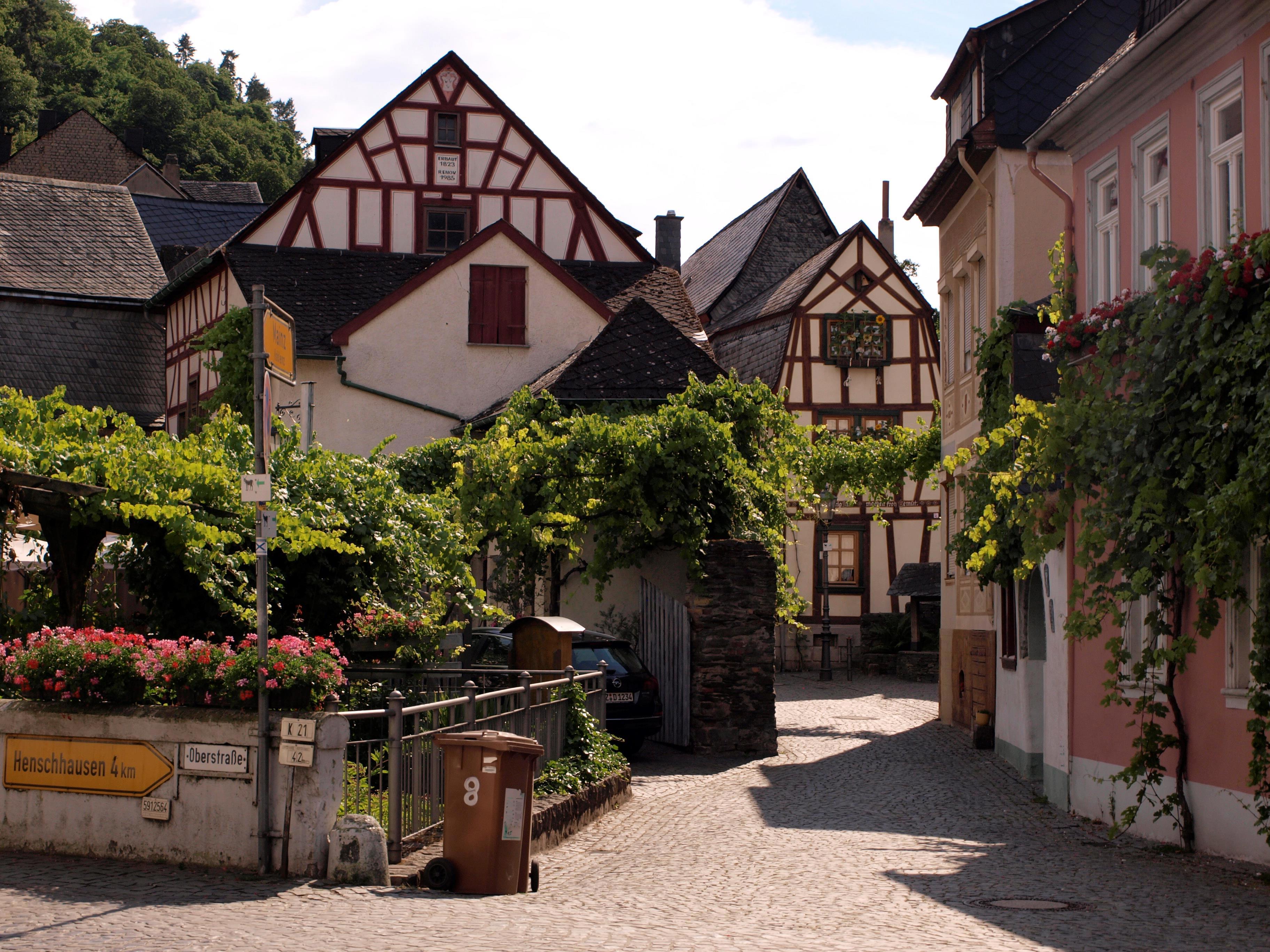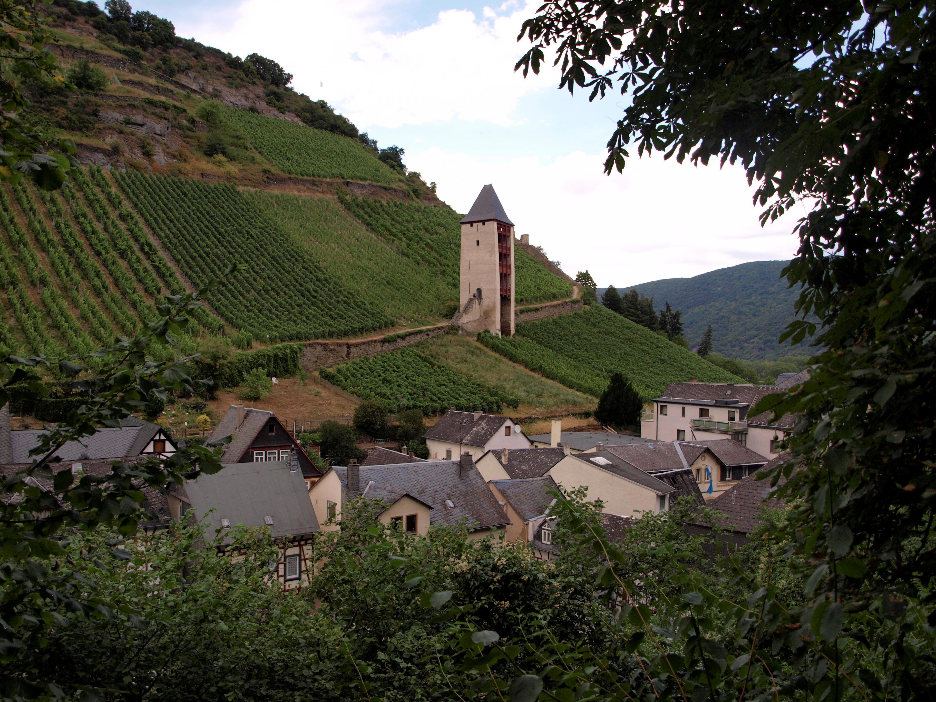 Бахарах находится в 1-1,5 часах езды от Франкфурта. В городке буквально три улицы, собор, разрушенная церковь, замок на холме, сторожевые башенки, фахверк-домики и море виноградников (здесь даже есть мороженое "рислинг" с молодым вином!). Ну и великолепный вид на Рейн с холмов.