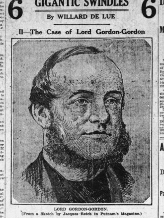 Гулд, сообразив, что еще немного, и общественное мнение объявит его злодеем (что было не слишком-то далеко от истины…), а Гордон-Гордона невинной жертвой, начал лихорадочно действовать. В первую же ночь после судебного заседания, его агенты телеграфировали американским консульствам в Лондоне, Париже и Берне с просьбой проверить сведения тех персоналиях, которых Гордон-Гордон представил как своих родственников и партнеров. Эта телеграфная операция обошлась Гулду в копеечку, но результат был в высшей степени удовлетворителен: каждый из “родственников и партнеров” Гордон-Гордона либо не существовал в реальности, либо слыхом не слыхивал о лорде Гордон-Гордоне.