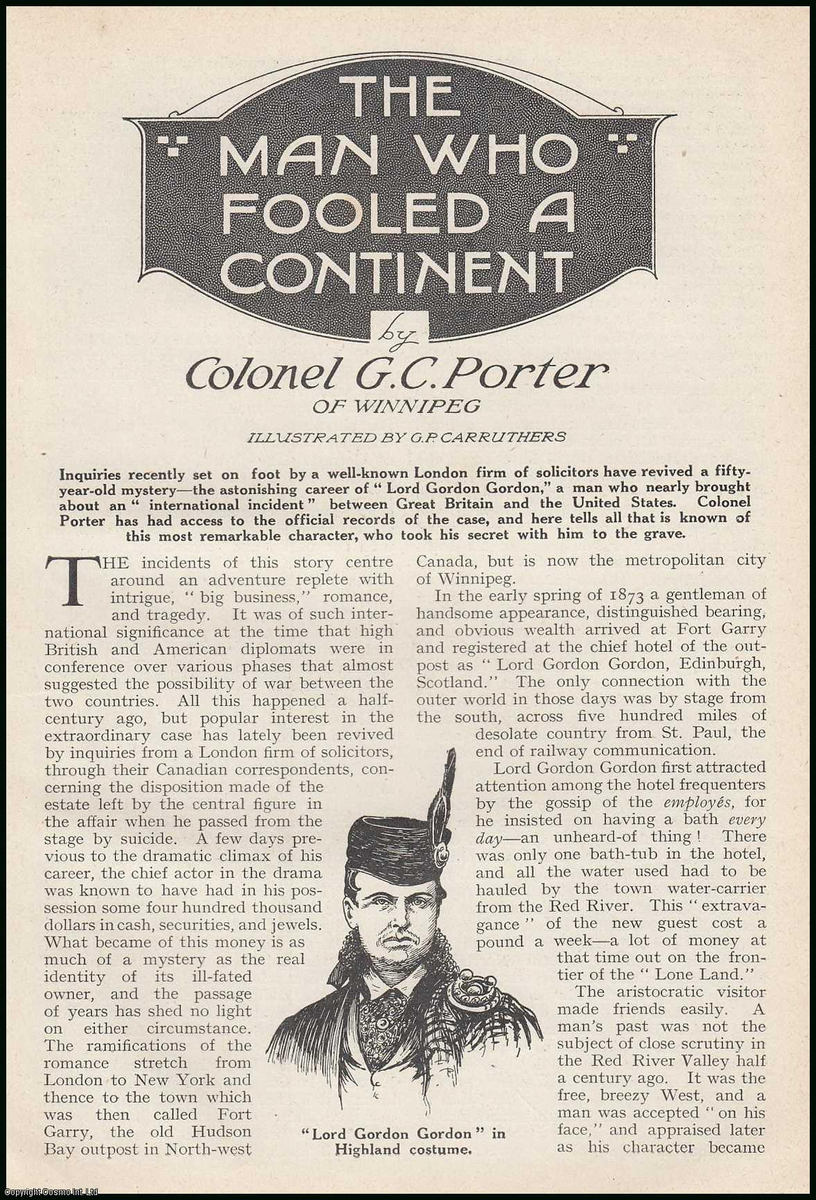 Человек, в дальнейшем ставший известным как “лорд Гордон-Гордон” впервые появился под именем “Гамильтон” в шотландском графстве Форфар, летом 1868 года. Позиционировал он себя как молодого джентльмена, приехавшего поохотится. Вел “Гамильтон” себя скромно, но с безупречным достоинством, демонстрировал замечательные манеры и всегда пунктуально платил по счетам. От расспросов о своем происхождении он вежливо уклонялся, лишь изредка позволяя себе намекнуть, что является больше, чем простым джентльменом, а также периодически упоминая, что владеет землями в Ланкашире и Нортгемптоне. По окончании охотничьего сезона, он уехал в неизвестном направлении.