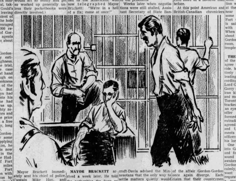 Через несколько дней Уилсон сумел убедить канадские власти позволить ему отправить телеграмму мэру Брэккету в Миннеаполис: “Я в чертовски запутанной ситуации. Приезжай скорее.” Брэккет примчался в тот же день скорым поездом и при посредничестве юриста пытался договориться об освобождении всей компании, но получил категорический отказ. Отношения между США и канадскими колониями в то время оставляли желать лучшего, и генеральный прокурор Манитобы был возмущен действиями американцев.
