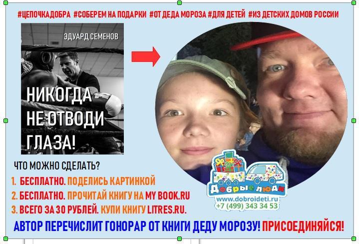 Ну, что ж друзья! Сегодня хочу напомнить Вам, что весь гонорар от моей книги "Никогда не отводи глаза" перечисляется в благотворительный фонд "Добрые люди", который сегодня обеспечивает бесплатными продуктовыми наборами более 2000 одиноких стариков.