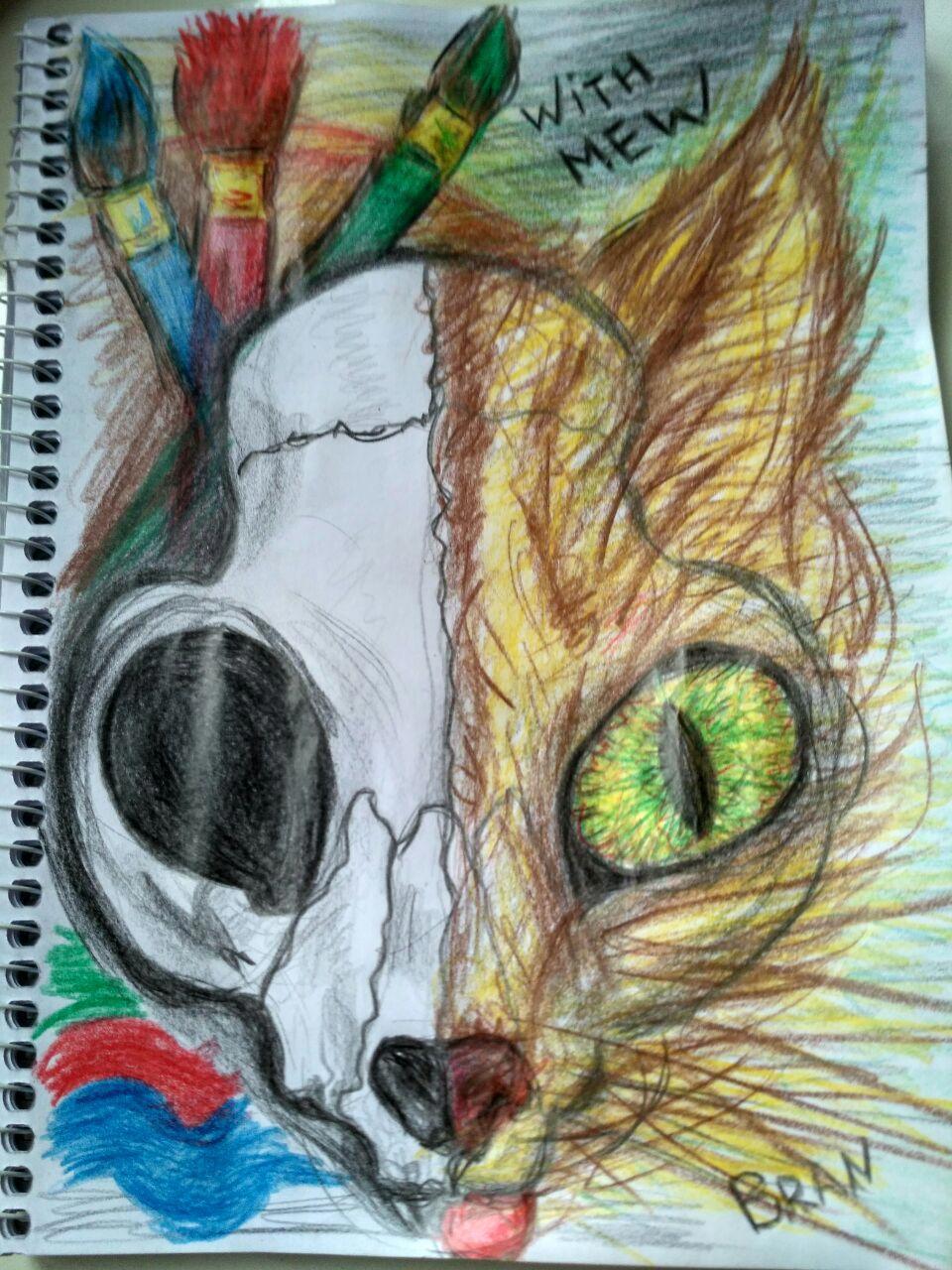 Автор: Branwena LlyrskaКарандаши я беру в руки крайне редко. А если еще и цветные — то это точно щось у лiсi здохло. Но сегодня не сдохло. Сегодня родилось. Так что вот, намалевала такую стрёмную открыточку для сэра Кота, Который Внутри. Береги лапки, Кот!