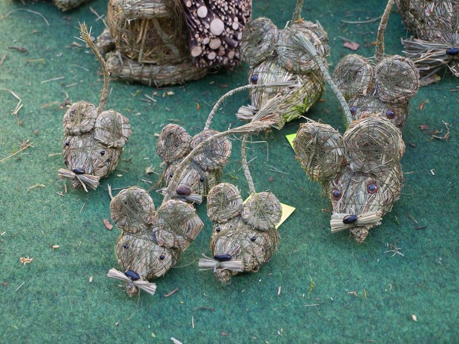 Я задержалась у фигурок, сплетенных из сена и украшенных стеклянными бусинами. Тут были кошки, мышки, олени, человечки, а с навеса свисали шары – от маленьких, с ладонь величиной, до огромных, которые не обхватишь руками.
