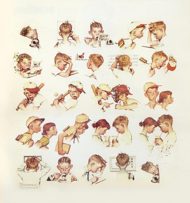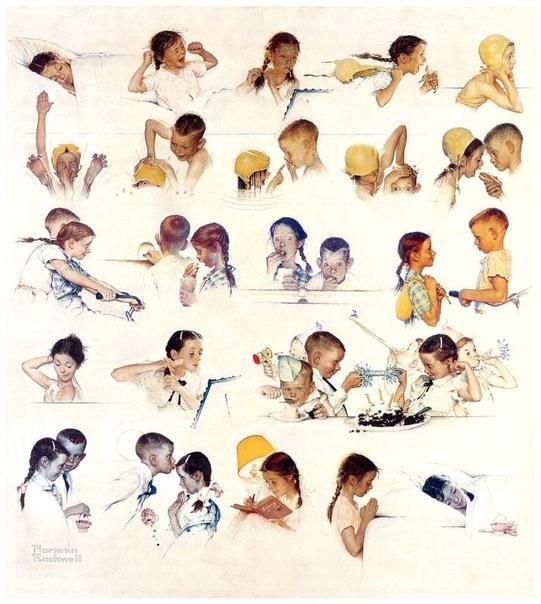 2. Ну и, собственно, то, ради чего выходил блог. Далее - подборка иллюстраций о мальчиках и девочках, а также замысловатых загогулинах их отношений. Художник - Норман Роквелл