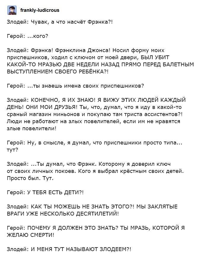 Что же до антагониста, то и этого приспешника ему не особо жалко. Он достаточно долго капал на мозг антагониста и даже составлял ему некую оппозицию, пускай и всё текло у них несколько вяло и скрытно. Но без него всё же легче, да и все идет по плану.