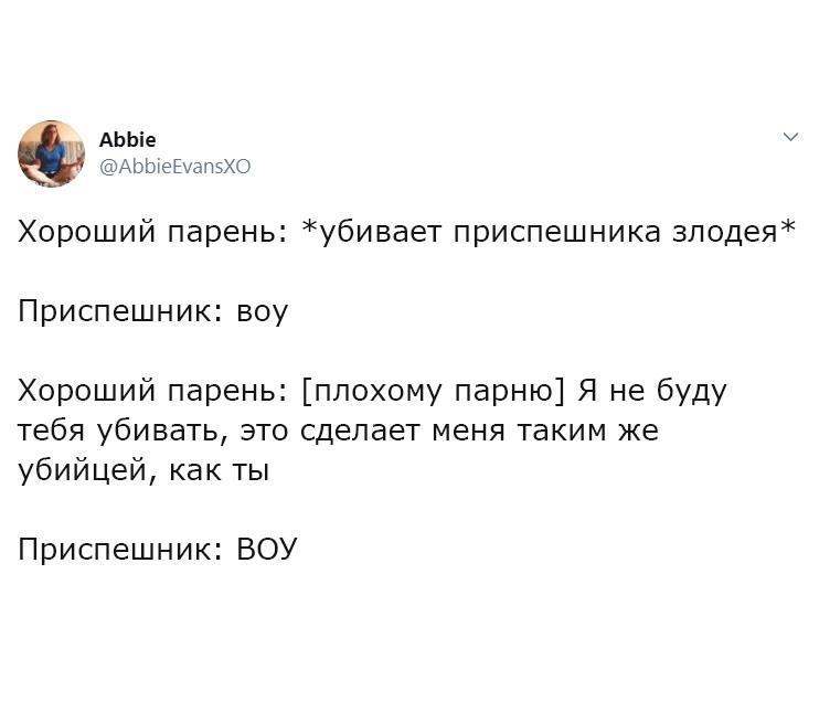 Для антагониста ответ, конечно, однозначен: злодей, виновен даже в том, что случилось до его рождения, должен гореть в аду. Кто читал «Тропы», тот наверняка поймет причины столько жгучей ненависти. И может быть, даже поддержит антагониста. Надо сказать, среди читателей он очень популярен благодаря своим идеям навести порядок в мире весьма радикальными методами.