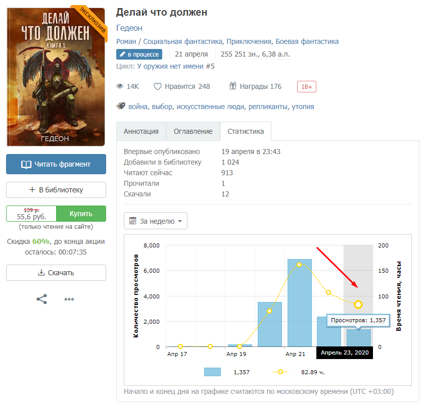 Так что изменилось за те пять лет, что Гедеон трепетно и нежно хранит скрины моих сообщений с накрутками. Если коротко - я сменил род деятельности и авторство стало для меня не основным источником дохода, а хобби. Гед, тебе будет больно это слышать, но я не задрачиваю сутками на твой профиль на АТ, отслеживая в топе ли твоя книга сегодня. Я вообще появляюсь там далеко не каждый день. Проду не выкладываю иногда месяцами, за последний год я написал всего две книги и двенадцать постов в блог… Неужели это показывает что я прямо таки живу автортудэем (только не надо писать Шапину: “Выбирайте, или он или я” - мы это кажется уже проходили).