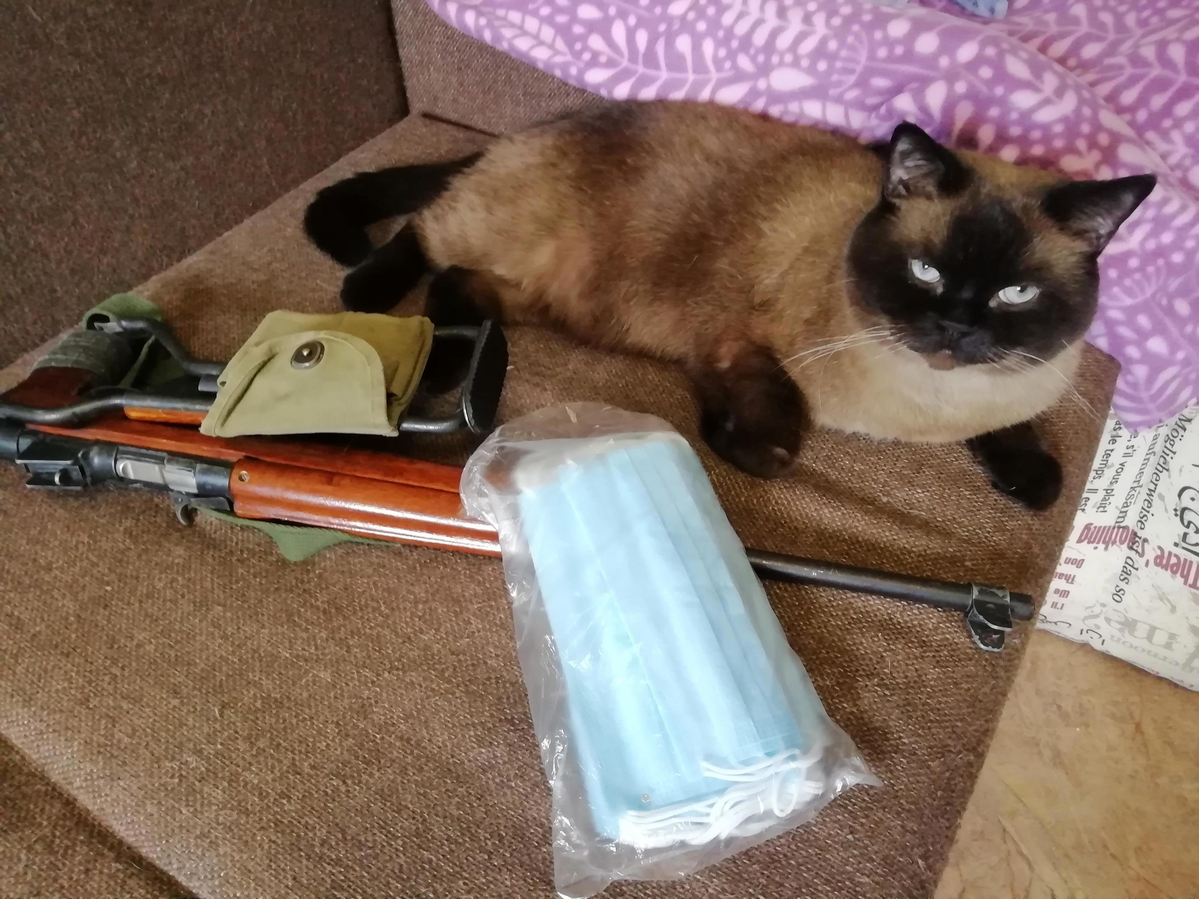 Сюжет в духе времени и почти по Андрею Крузу: котик, маски, карабин