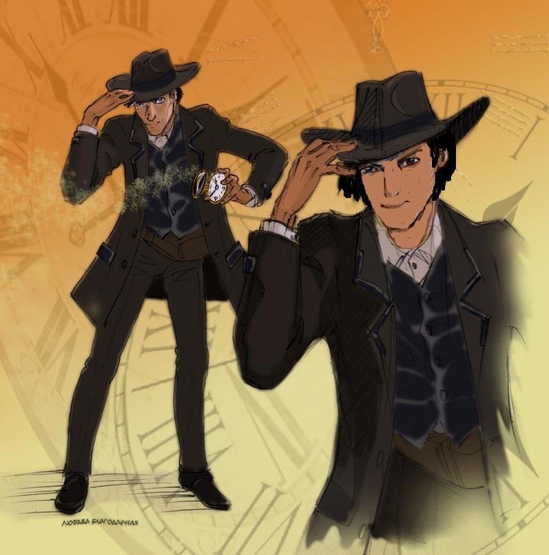 Автор: Эльвира ДартаньянВ поисках вдохновения сунула нос в свои архивы, где хранятся в обычных бумажных тетрадках наработки, черновики, первые романы и прочее) Последний раз такой "поход" в любимую кладовую стал поводом "оживить" роман про Похитителя времени. У меня, как всегда, написано несколько глав, а остальное в голове да в тех же тетрадках в виде планов и синопсиса - шоб не забыть) Главы я подправила, сунула сюда, теперь опять жду прилива - времени и свежей головы, - что в последнее время бывает очень редко (спасибо пандемии). К слову, ещё раньше поводом написать полноценный роман с героем послужила похвала (на другом сайте) моей пьесе-мюзиклу Похититель времени или один чудесный день . Мне тогда даже рисунок нарисовали на неё на конкурсе художников. Автор Любава Благодарная (она где-то в ВК обитает, ну или обитала). И вот сегодня перечитала свою пьесу и наткнулась на рисунок. Решила вам показать, дорогие жители АТ. Правда, я взяла на себя дерзость немного изменить копию своими неумелыми ручками и покажу тут то, что получилось. К слову, я исправила только лицо - чуть его омолодила, ибо мой герой по книге молодой человек лет под тридцать, а мне мужика нарисовали и не совсем в моём вкусе. В общем, вот рисунок