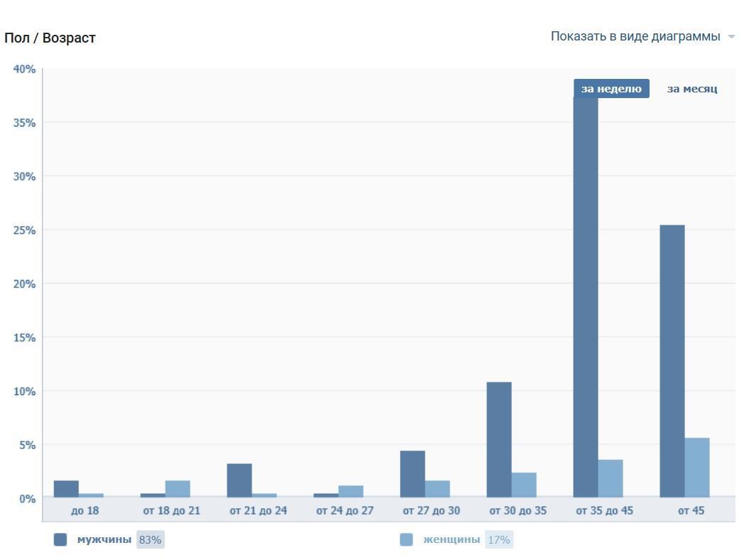 Вот так выглядит половозрастная структура паблика "Космическая фантастика".