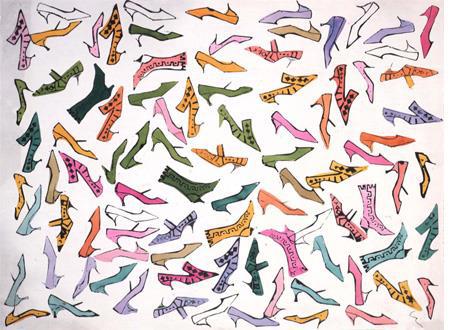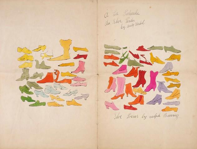 Энди Уорхол. Раскрашенная вручную литография из серии «À la recherche du shoe perdu». 1955 год