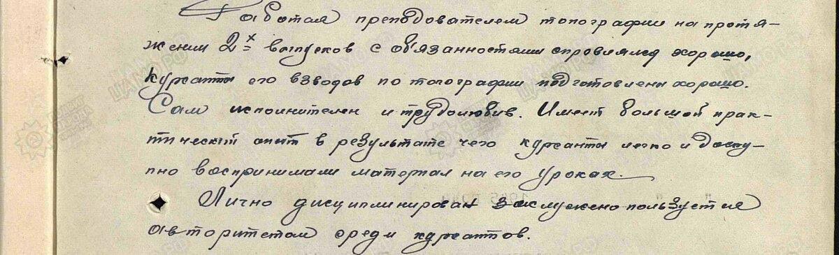 В представлении к его шестому ордену, полученному ровно через тридцать лет после пятого, отмечалось: «Работая преподавателем топографии на протяжении двух выпусков с обязанностями справлялся хорошо, курсанты его взводов по топографии подготовлены хорошо. Сам исполнителен и трудолюбив. Имеет большой практический опыт, в результате чего курсанты легко и доступно воспринимали материал на его уроках. Лично дисциплинирован, заслуженно пользуется авторитетом среди курсантов».