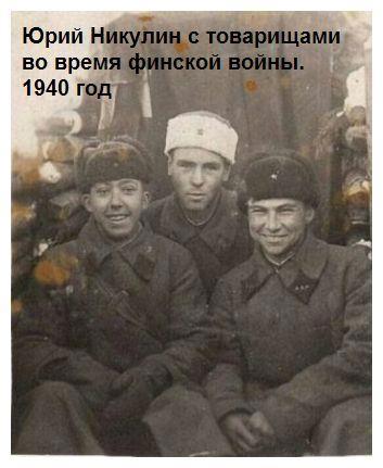 Победу Никулин встретил в Прибалтике. Однако домой попал не скоро. Демобилизацию проводили в несколько этапов, и до него очередь дошла только через год после окончания войны - 18 мая 1946 года. Как-то в разговоре он сказал: «Не могу сказать, что я отношусь к храбрым людям. Нет, мне бывало страшно. Все дело в том, как тот страх проявляется. С одними случались истерики — они плакали, кричали, убегали. Другие переносили внешне спокойно... Но первого убитого при мне человека невозможно забыть. Мы сидели на огневой позиции и ели из котелков. Вдруг рядом с нашим орудием разорвался снаряд, и заряжающему осколком оторвало голову. Сидит человек с ложкой в руках, пар идет из котелка, а верхняя часть головы срезана, как бритвой, начисто...»