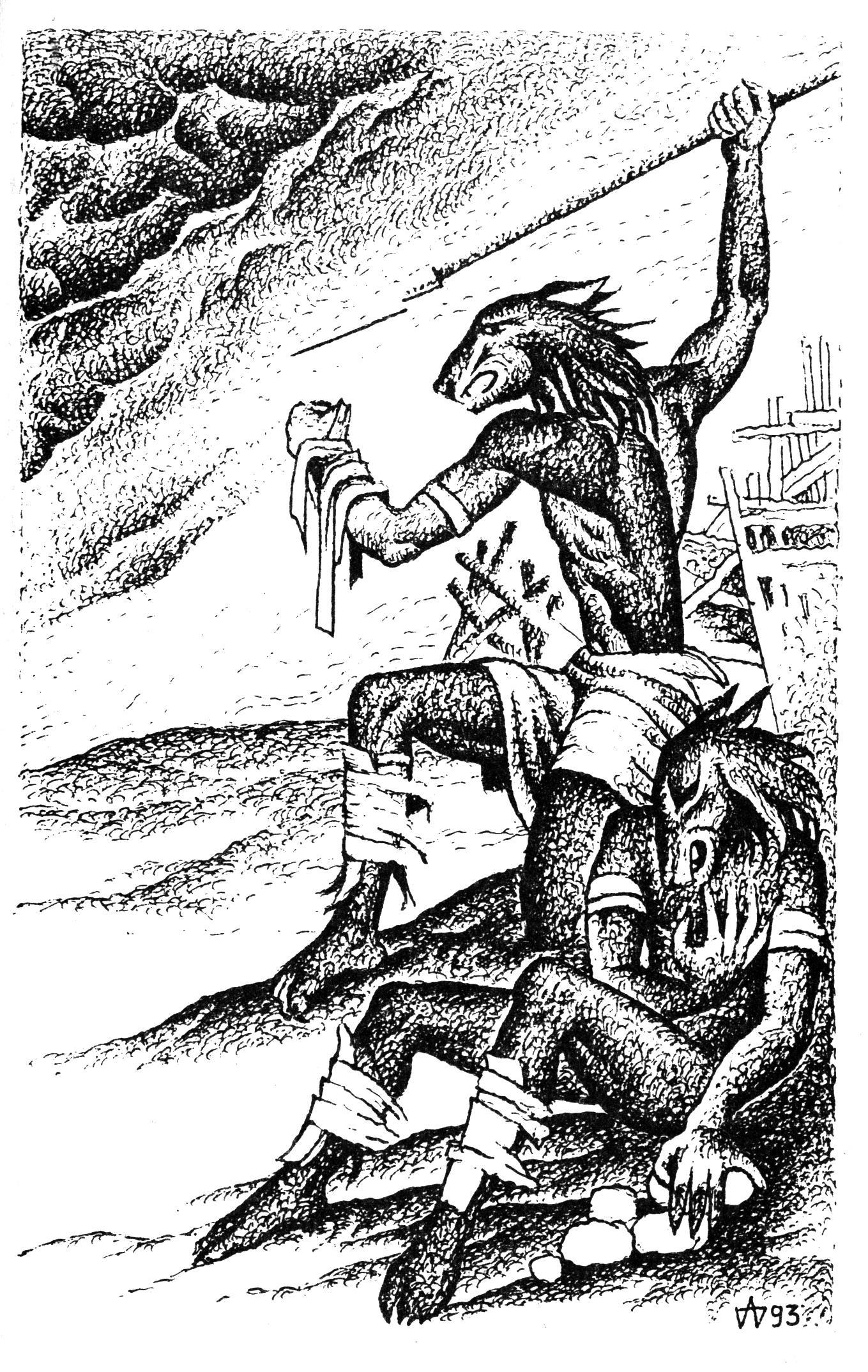 Ворота распахнулись -- и началась бойня. Оборотни не щадили никого. Невидимая в темноте смерть настигала Постоянных всюду, мечи и клыки работали без устали, рассекая шарахавшуюся ночь и податливую плоть человеческую...
