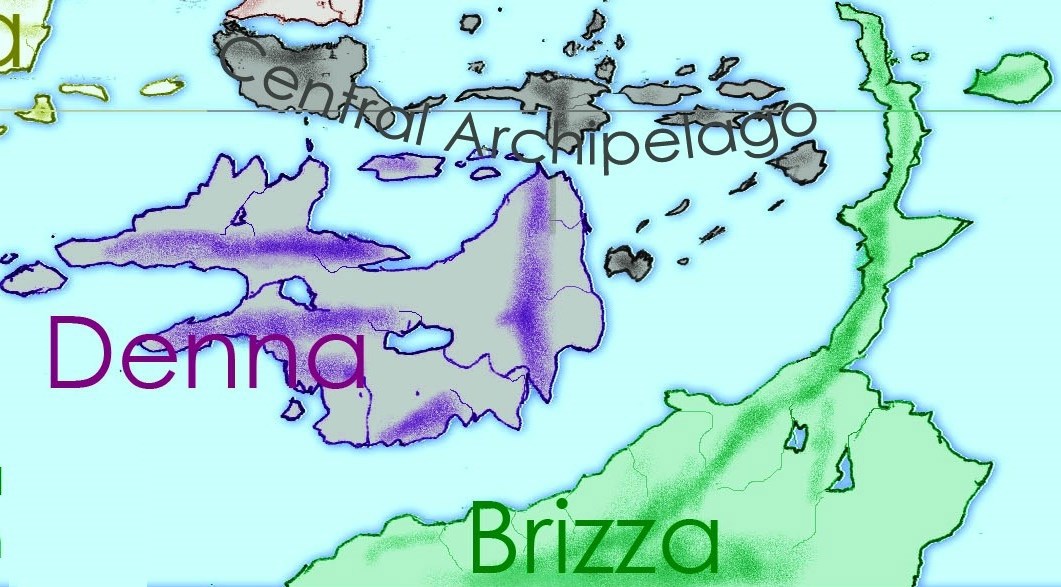 Бризза – 28 млн. кв. км. (+0,5 млн. – острова), общее население – 70 млн. чел. Колонизаторами данного материка являлись в первую очередь Латинская директория (Бразилия, Мексика, Колумбия, Уругвай*), также была запоздалая попытка основать независимую колонию у самой малой из директорий - Средиземноморской (Израиль, Греция, Кипр и Грузия*), однако она быстро вошла в состав Первой Бриззской империи. На Великом Полуострове (выдающемся на север более чем на 7 тысяч километров и пересекающим экватор) также основывали колонии Австралийская и Рутенийская (Россия, страны Евразии, а также ряд латиноамериканских государств) директории.