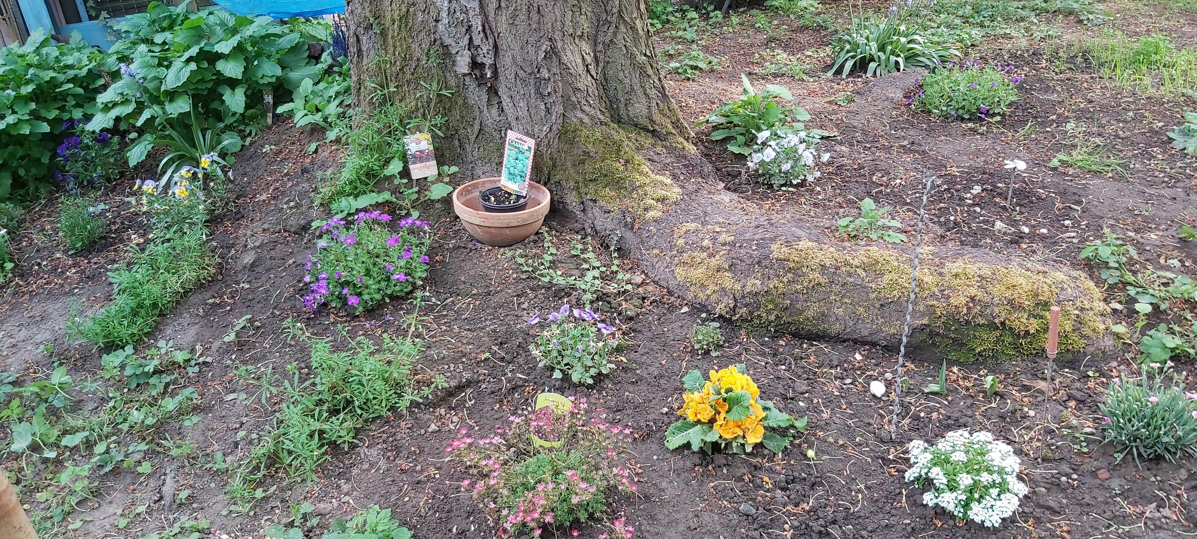 Укроп пошёл... От вишни ошмётки всё летят и летят.... Ыыыыы Справа помидор - из парника убрала, так как в морозную ночь он почти погиб, но вот оклемался на воле.