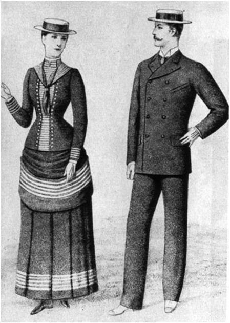 Шляпки напоминали клумбы, а порой и диковинные клетки с райскими птичками, чьи чучела использовались в декоре. Конечно, эта красота была тяжеловесна, но мода диктовала свои законы. Сторонницам более простой, практичной моды удавалось выйти из положения следующим образом – они украшали шляпки типа канотье россыпью незабудок или розовым бутоном, а также всем тем, что произрастает на лугах и полях близ городов.