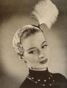 В 1950-е годы среди головных царствовали наиболее женственные. Женщины, уставшие от мужественных и сухих нарядов военных лет, стремились быть хрупкими и изящными. Очень популярны были миниатюрные шляпки и полушляпки, крошечные сумочки и перчатки. Их носили всюду и во все сезоны.