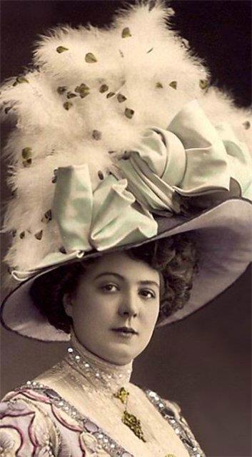 Начало 20 века – рассвет модерна, и дорога в новый век была устлана цветами. Цветы были повсюду: на фасадах домов, на мебели, на платьях, в прическах и, разумеется, на шляпках. В моду вошли широкополые шляпы, которые могли уместить на своих полях цветы и цветочки: пармские фиалки, камелии, розовые букетики.