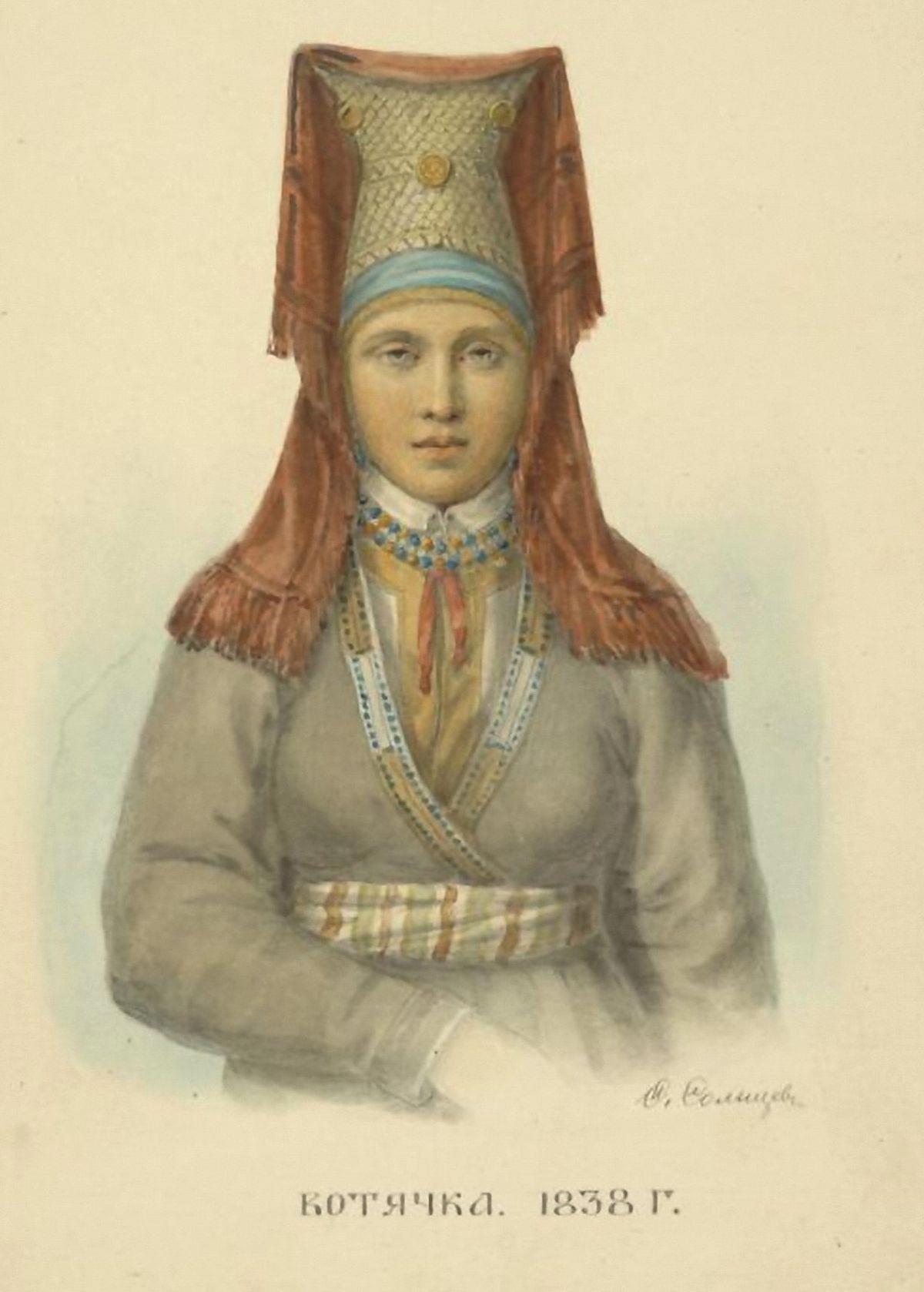 Замужние женщины были просто обязаны покрывать голову. Они прятали волосы под специальными повязками или шляпками. Незамужние девушки могли ходить и с распущенными непокрытыми волосами, вплетая в них цветы.
