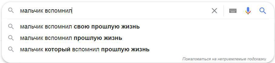 И, вероятно, мы не можем знать наверняка кое-что. Если вбить в поисковике: «Мальчик вспомнил…» дальше из вариантов будет «свою прошлую жизнь.», «прошлую жизнь» и «Мальчик который вспомнил свою прошлую жизнь». По логике интернета дети ничего вспоминать больше не могут.