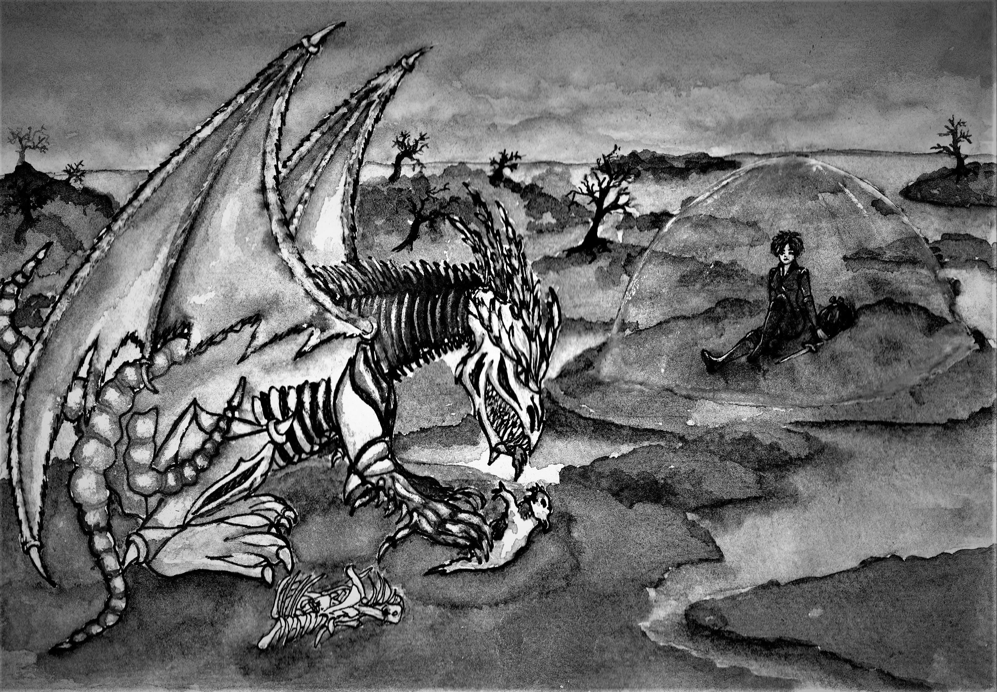 Так вот, товарищи, Daria Sogrina-Druc нарисовала стращилище, которая повстречала героиня моих фентезийных рассказов (да, я иногда даже фентези умудряюсь писать) на своем пути. А в рисовании стращилищ, как вы понимаете, и проверяется фантазия художника